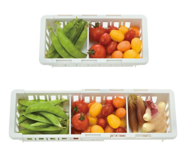 冷蔵庫のスペースや入れる食材に合わせて幅を調整できる