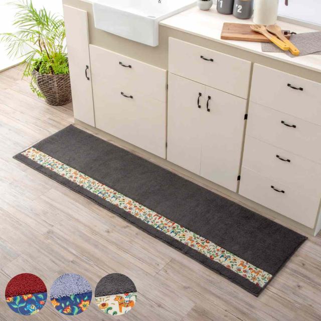 ●パイル生地と、綿のプリント生地のラインがアクセントになったダーラヘスト柄のキッチンマット50×120cmです。