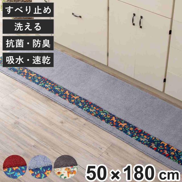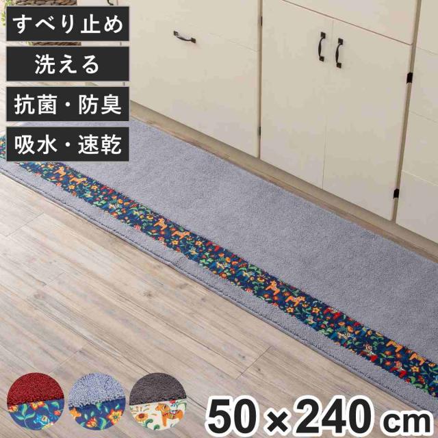 キッチンマット ダーラヘスト 50×180cm ( 50cm 180cm 洗える すべり止め加工 吸水 速乾 抗菌 防臭 日本製 キッチン マット 台所マット キッチンラグ おしゃれ 北欧 北欧風 馬 ダーラナホース )