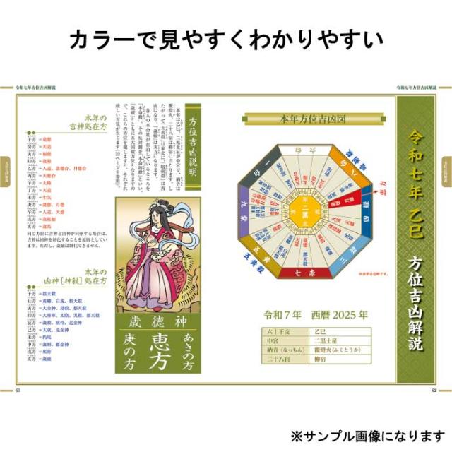 | 商品特徴 | ・フルカラー印刷により見やすく、また、主要な暦の用語にふりがなを振っておりますので、難解と思われる暦用語を理解するのに重宝いたします。 ・年・月ごとの運勢に加えて、日ごとの運勢も詳しく本書に記載されております。 ・暦にあまりなじみのない方や、初めての方でも自然に暦と親しめる一冊です。 |