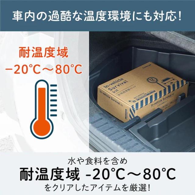 ●車で待機しなければならない状況で安心できるように、車に備蓄する災害対策セットです。