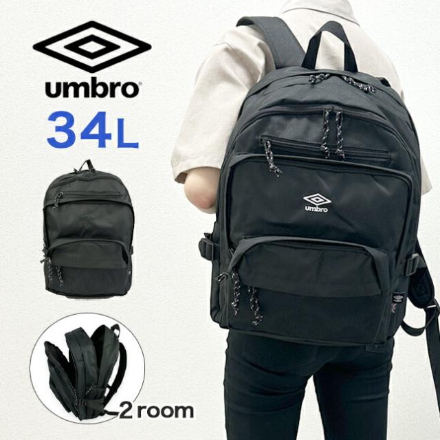 リュック 通学 大容量 軽量 女子 男子 umb-0021 umbro アンブロ 刺繍2層リュック 34L B4 PC タブレット ブランド ロゴ 通学リュック 修学旅行 林間学校 合宿 大きめ 黒 メンズ レディース 通学カバン 高校生 中学生 部活 旅行 アウトドア スポーツ シンプル ブラック