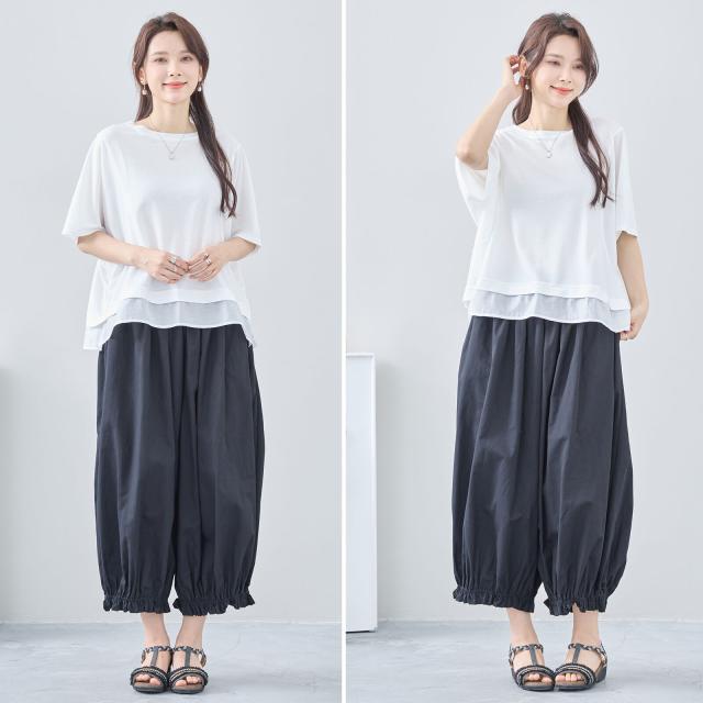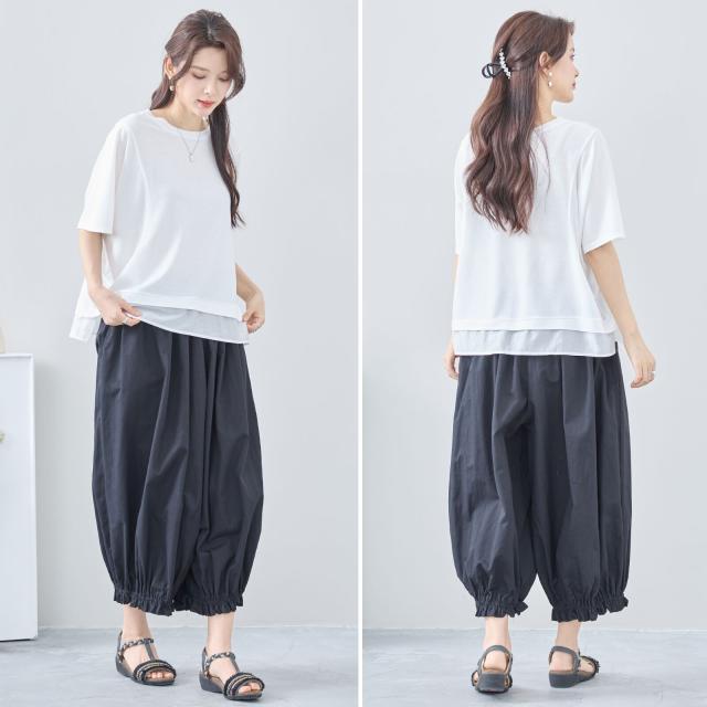 カジュアルに着こなせるトレンドのアラジンパンツ。細見えシルエットで美脚効果も抜群です。