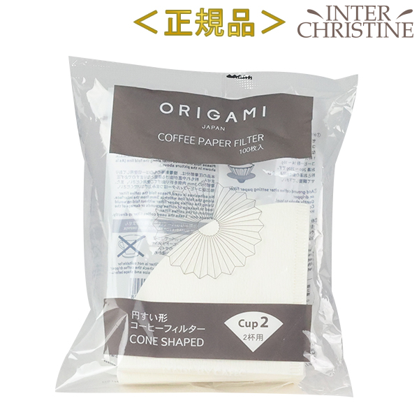 オリガミペーパーフィルター 100枚入(2杯用)。ORIGAMIの円錐ペーパーフィルターはシワが深く十分な厚さがあることが特徴です。これによりスムーズな抽出が可能となり、よりクリーンな味わいになります。 |