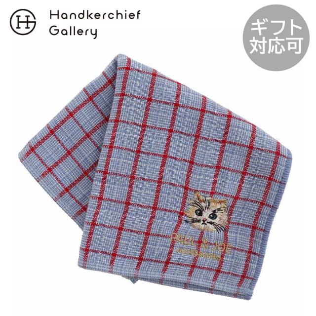 表面はガーゼ、裏面はパイルのタオルハンカチ。秋冬のお洋服をイメージしたチェック柄に、キュートなジプシートの刺繍を施しました。