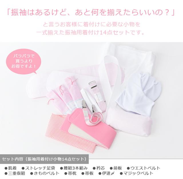■振袖の着付けに必要な着付け小物セット■断然お得な14点セット 肌着 足袋 腰紐 伊達〆 衿芯 前板 後板 帯枕 三重紐 ウエストベルト 着物ベルト マジックベルト