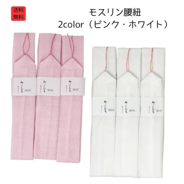メール便 送料無料 腰紐 着物 着付け小物 モスリン腰ひも 3本セットモスリン腰紐 腰ひも 着付け小物 モスリン 腰紐 白 ピンク 3本組み腰紐3本セット 振袖 ゆかた きもの
