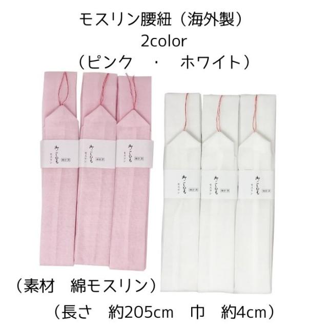 腰紐 着物 着付け小物 モスリン腰ひも 3本セットモスリン腰紐 腰ひも 着付け小物 モスリン 腰紐 白 ピンク 3本組み腰紐3本セット 振袖 ゆかた きもの