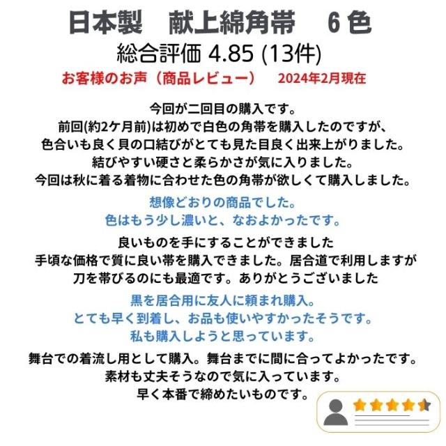 送料無料 在庫処分品 角帯 紳士 綿角帯 かくおび 献上柄 浴衣 ゆかた 着物 きもの 居合 剣道 弓道 詩吟