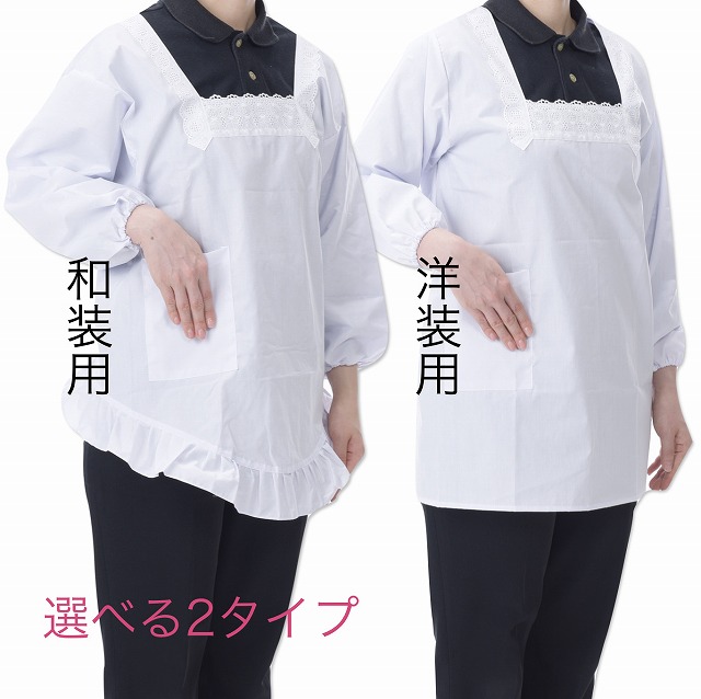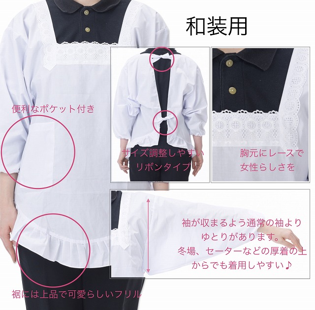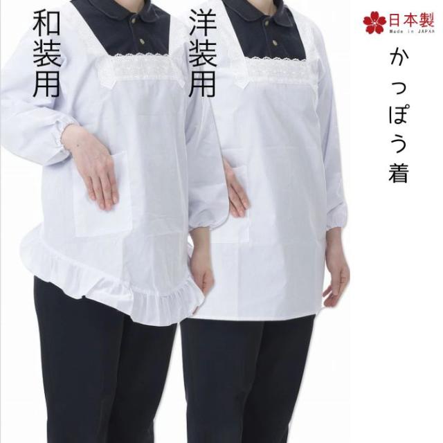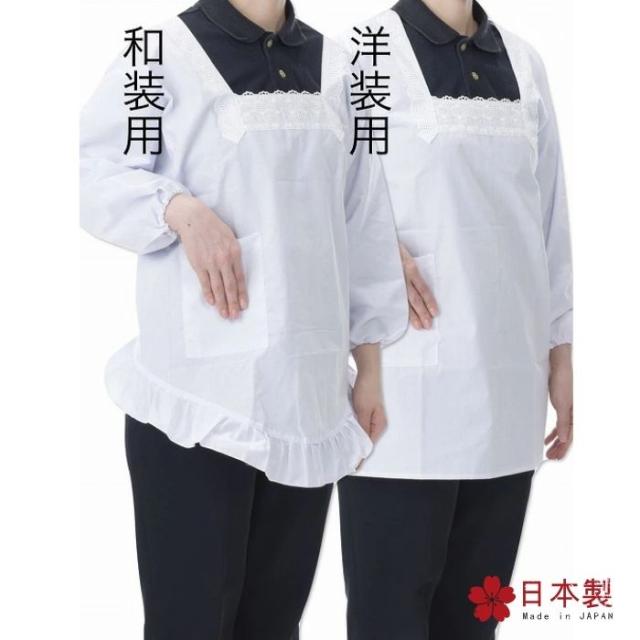 送料無料 母の日 割烹着 白 和装 洋装 M L エプロン大竹商店 日本製 レース付 白 近江晒 和装 洋装 かわいい 着物 無地 フリル ポリエステル ギフト プレゼント