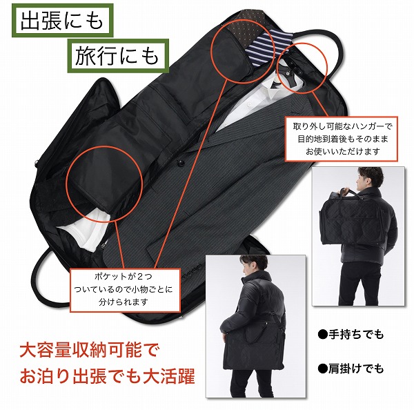 - 2泊分の荷物を詰め込んでる途中ですが、ポケットに細々したものをたくさん入れられて助かります。ハンガーにそのまま掛けるだけもラクできて助かります。