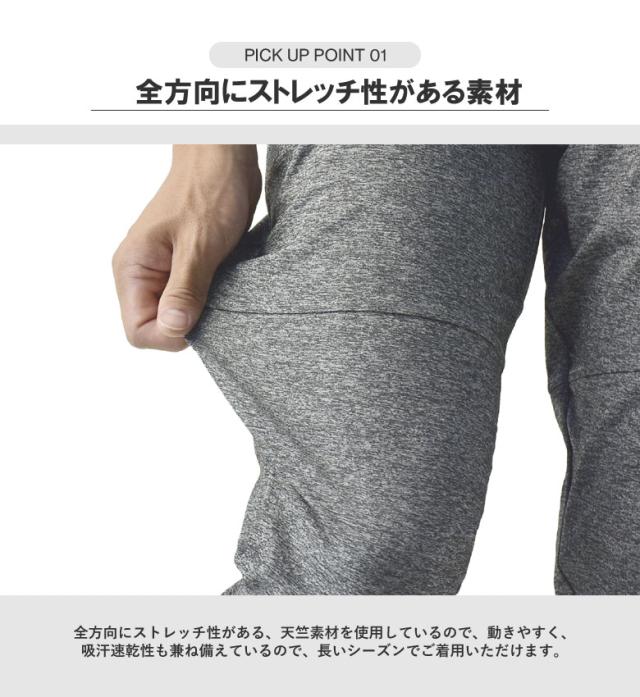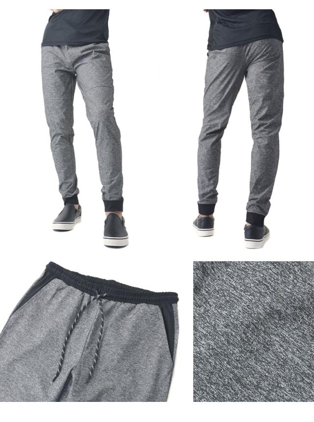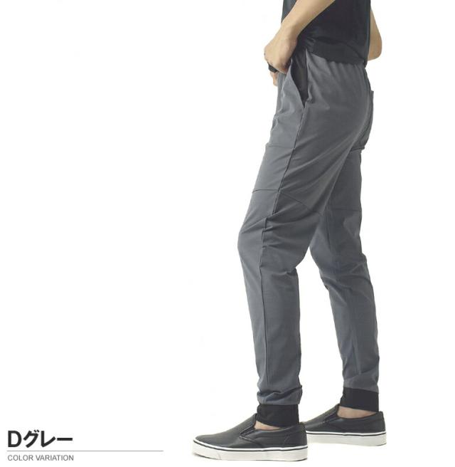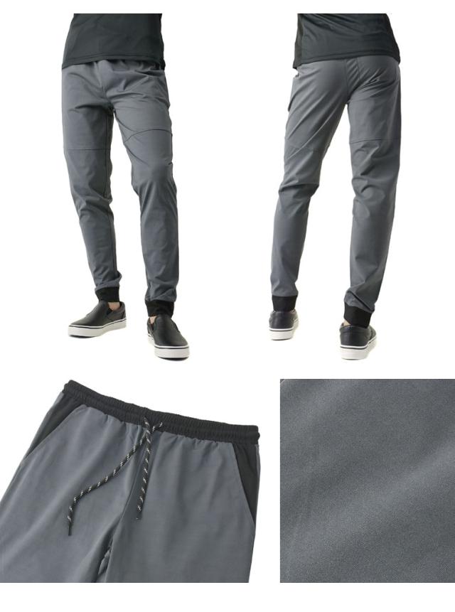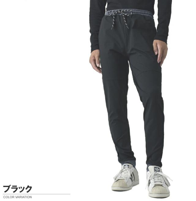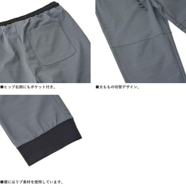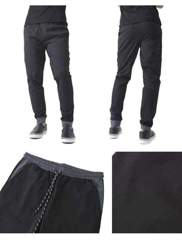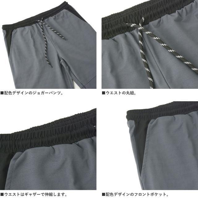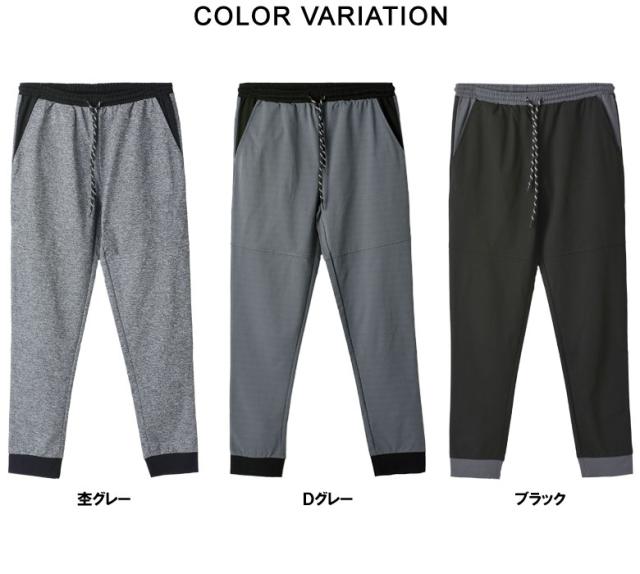 メンズ ストレッチ天竺 ジョガーパンツ ウエストギャザー ウエスト紐 配色切替 吸汗速乾 新作【C3A】【パケ1】
