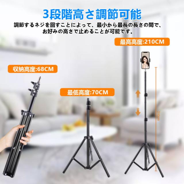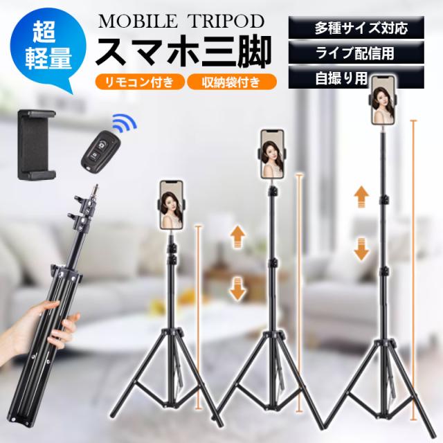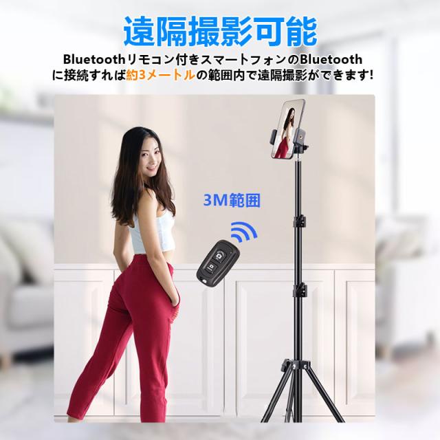 自撮り スタンド セルカ棒 スマホ用 スマホスタンド 三脚 ホルダー ミニ三脚 軽量 コンパクト 遠隔撮影操作 リモコン付き 3段階伸縮 収納袋付き