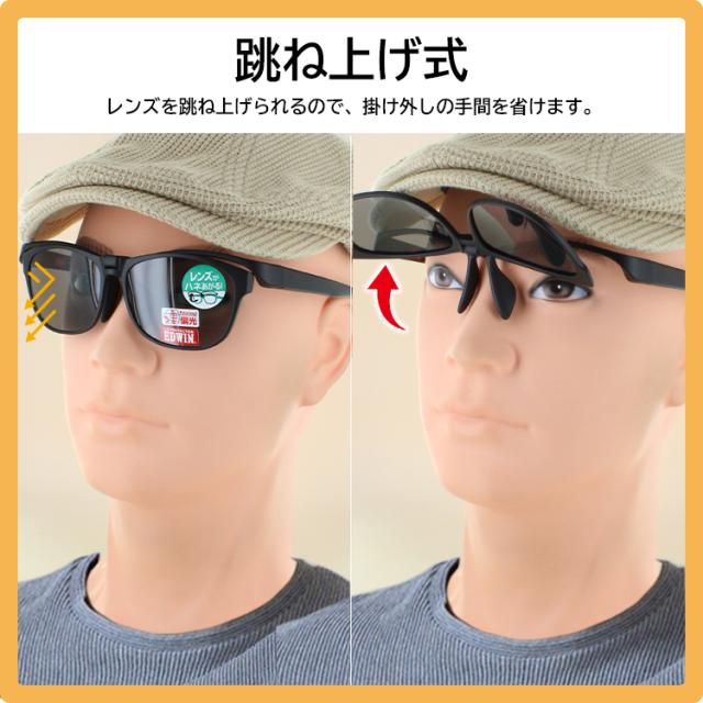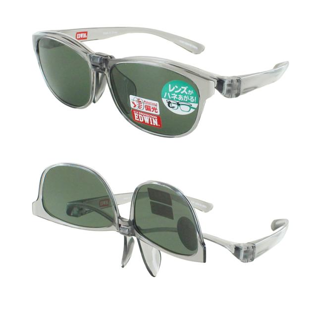 偏光サングラス 跳ね上げ式 メンズ レディース UVカット ワンタッチ ハネアゲ 掛け外し不要 運転 ドライブ 釣り ブランド アウトドア サイクリング 登山 レジャー EDWIN エドウィン EDF-020 軽量 ブラック クリアグレー グレー グリーン 偏光レンズ 紫外線対策 UV対策