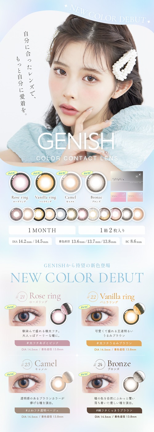 989円最安 2箱で送料無料 盛れる カラコン 1ヶ月 カラコン 度なし 1ヶ月 ジェニッシュUV 1箱2枚入 カラコン1ヶ月 カラーコンタクト genishuv