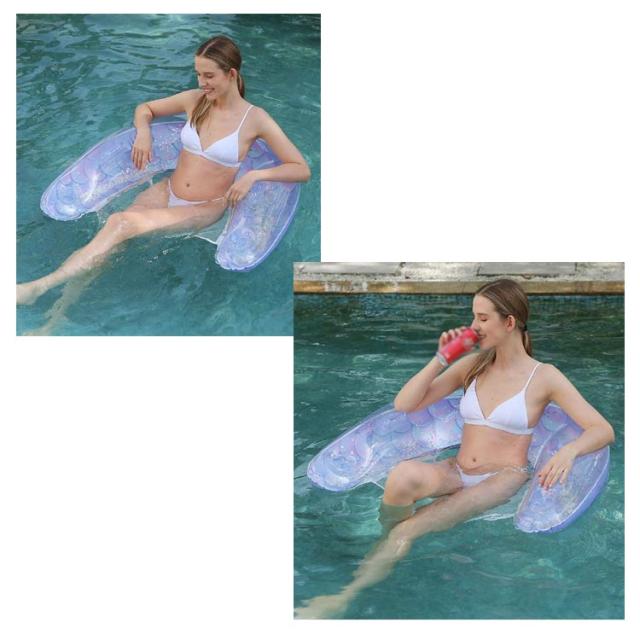 | 転倒や傾きにくいU字型のデザインで、水の上でのんびりリラックス! ドリンクホルダーのついた浮き輪なので、プールの上でぷかぷか浮かぶのにおすすめですよ! 安定感・クッション性抜群のシートはソファーのように体を包み込み、自然な体制でゆったりと座ることができます。 背もたれがついているのでぷかぷかと水の上でリゾート気分を楽しめます。楽な姿勢で座ることができます。 シルバーとパープルの2色からお好きなカラーを選べます。 | |