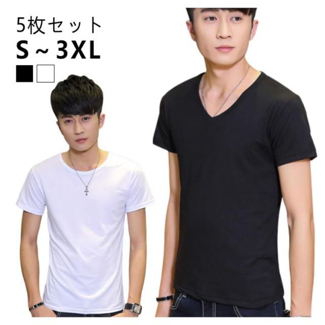 5枚セット インナーシャツ メンズ Vネック Uネック Tシャツ 下着 半袖 クルーネック V首 丸首 大きいサイズ 男性用 アンダーシャツ 肌着 紳士 コットン 白 黒 無地 定番 シンプル オフィス 仕事