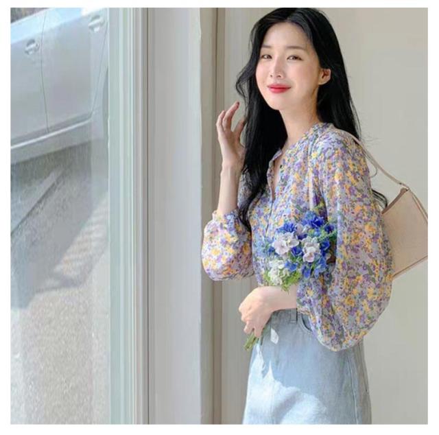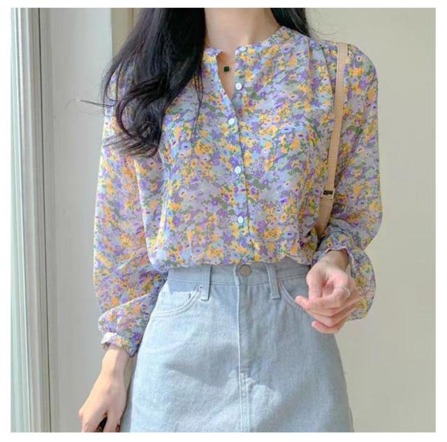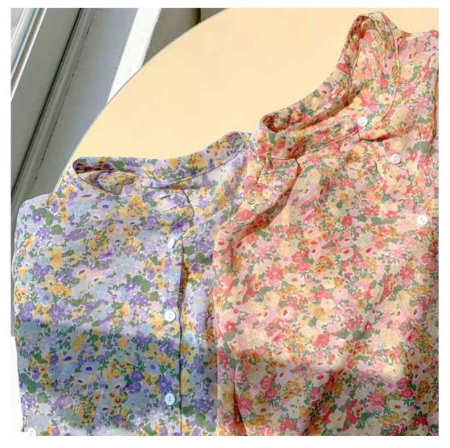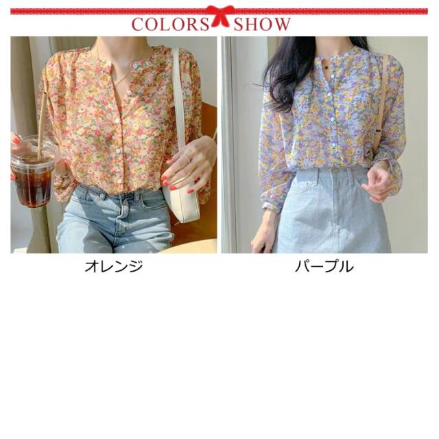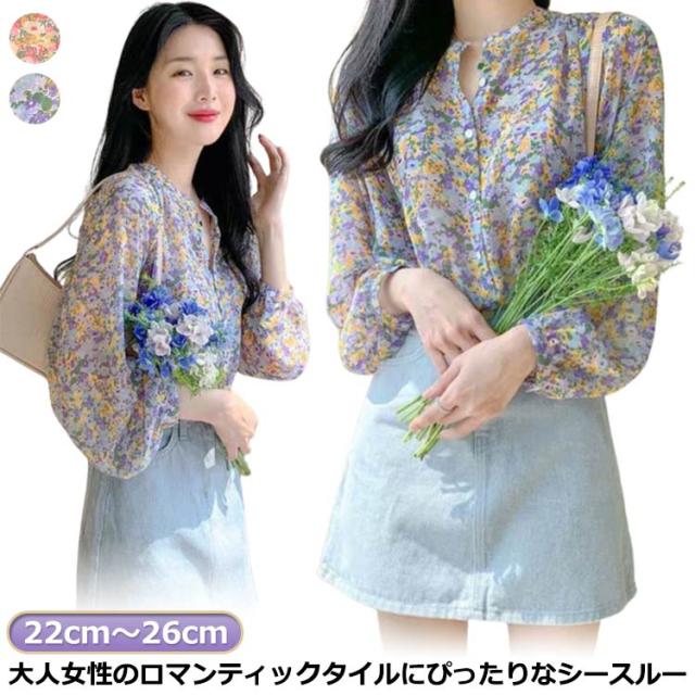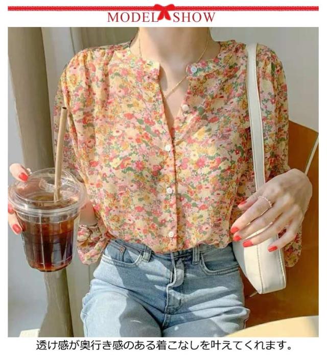 ブラウス レディース 長袖ブラウス シファンブラウス 透け感 夏 オフィスブラウス 花柄 シースルー きれいめ シファン フラワー柄 オシャレブラウス トップス 韓国風 大人 上品 通勤 OL ゆったりシャツ 大きいサイズ 40代 30代 50代 送料無料