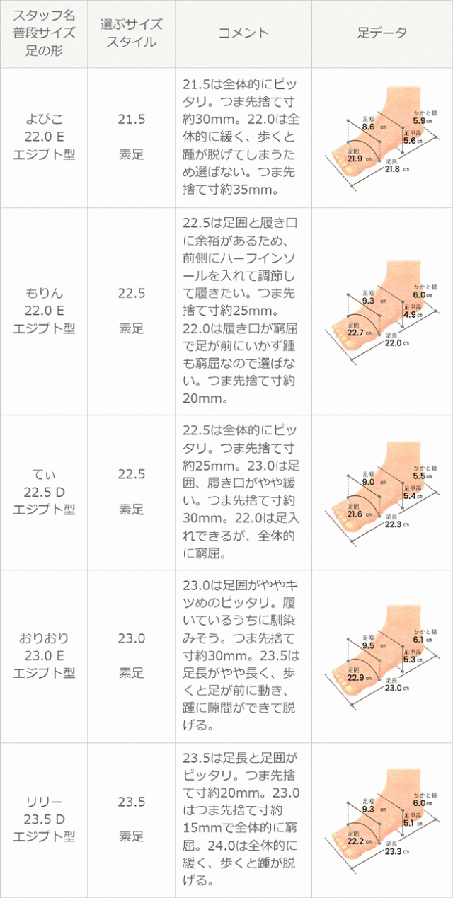※足の形には個人差があります。スタッフ試着感想は参考程度にお考え下さい。
