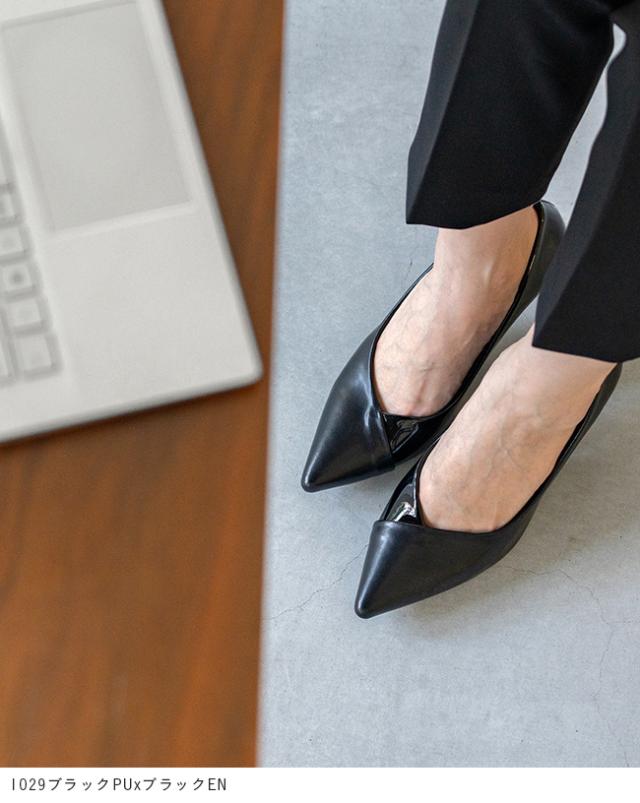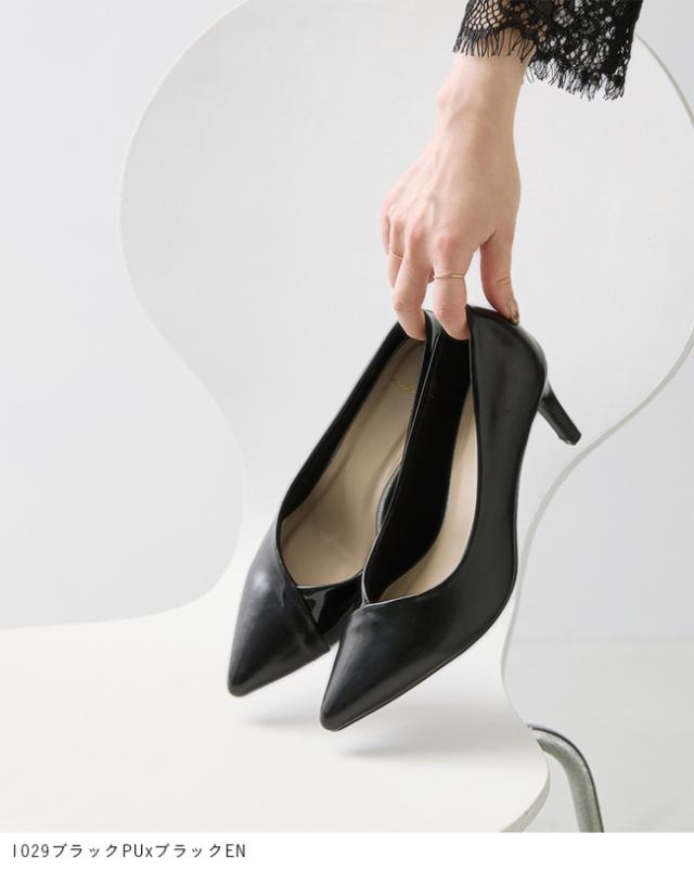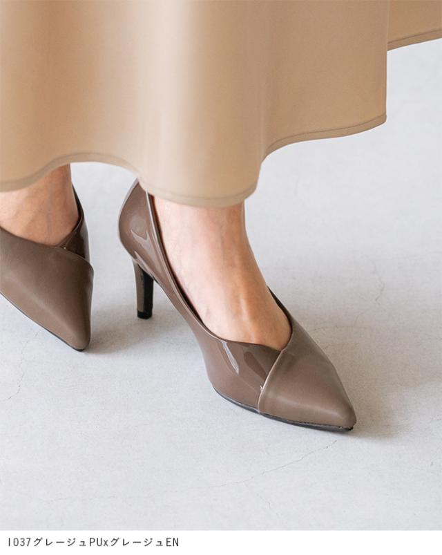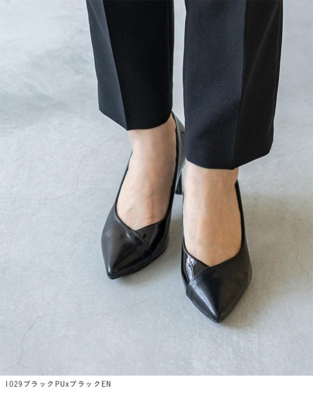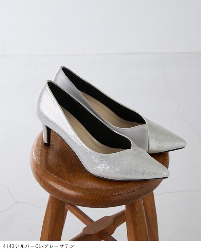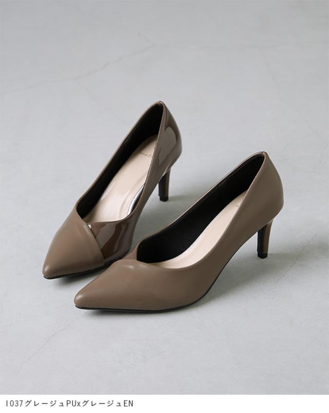 パンプス 走れる 痛くない レディース 7cmヒール ポインテッドトゥ Vカット 異素材 バイカラー 送料無料