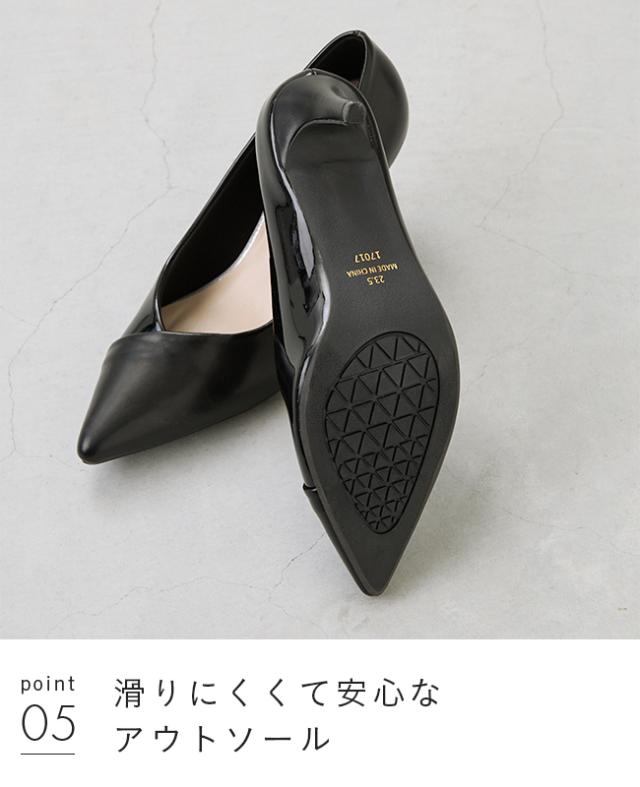 ヒールはwellegで採用している他のパンプスのヒールよりも細く華奢なものを使用。ヒールの付け根は太く安定感◎