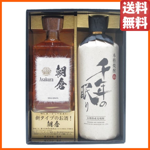 【ギフトセット】 『篠崎 九州朝倉 樽熟成 朝倉 樽熟成 麦焼酎 40度 500ml-1本』&『千年の眠り 樽熟成 麦焼酎 40度 720ml-1本』