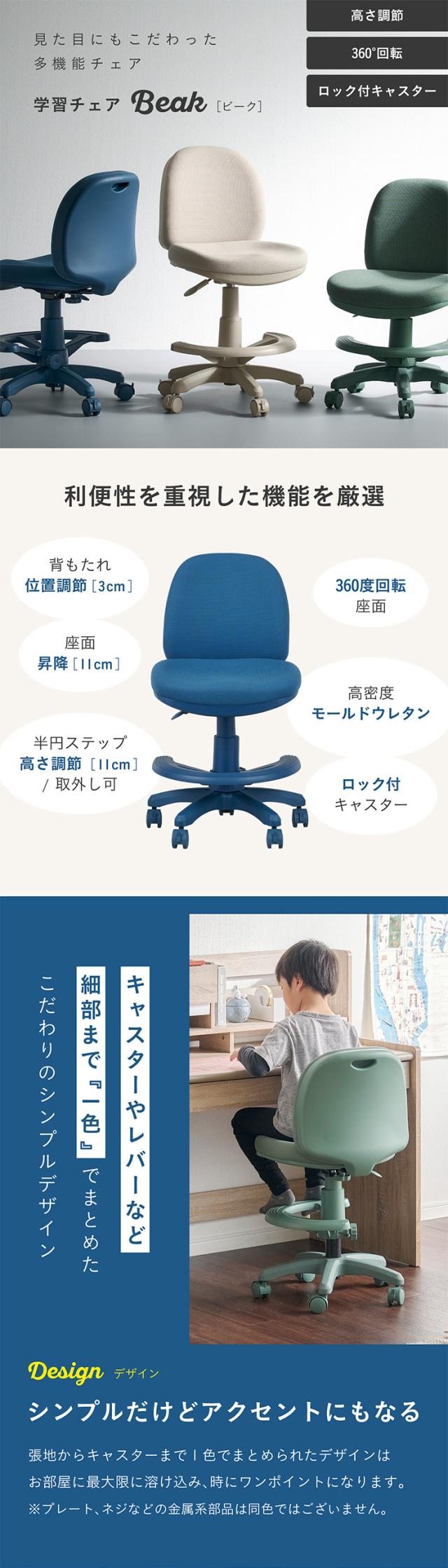 学習椅子 昇降式 学習チェア 学習チェアー ロック付きキャスター 360度回転 学習いす 学習イス 子供椅子 椅子 イス 子供用 子ども用 回転椅子 足置き ファブリック 子供部屋 ポップ おしゃれ Beak(ビーク) 3色対応