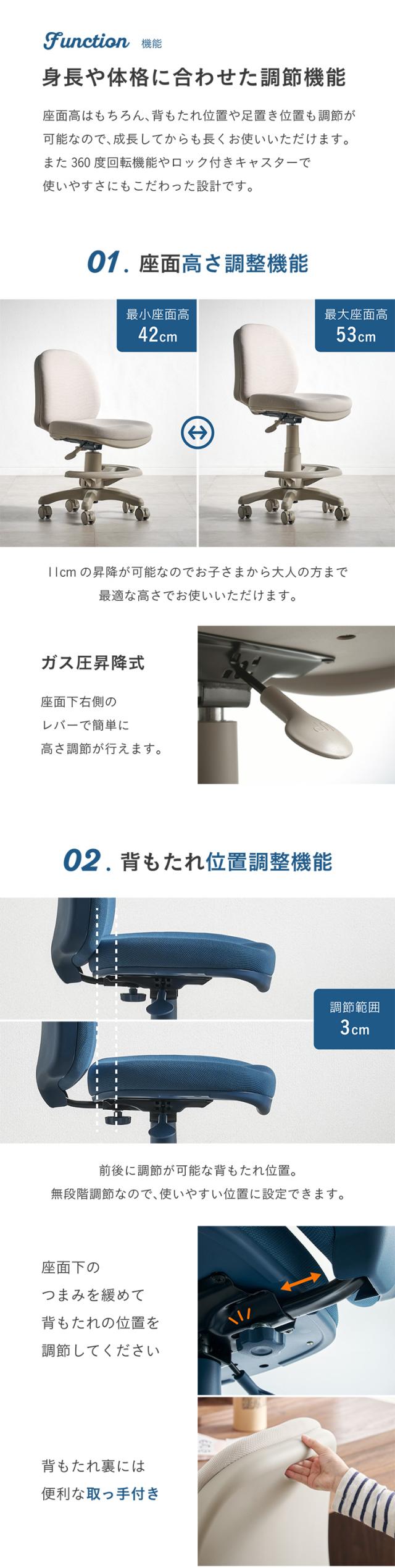 ※座面昇降の際、お子さまの体重が軽い場合下がらない事がございます。その際は大人の方が代わりに高さ調整を行って下さい。