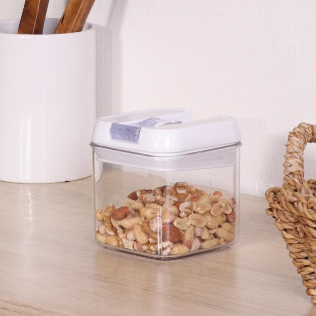 角のない四角形で掴みやすい400mlの保存容器です。落としても壊れにくく、軽くて使い勝手の良いプラスチック製で、ナッツやドライフルーツなどの保存にぴったりです。