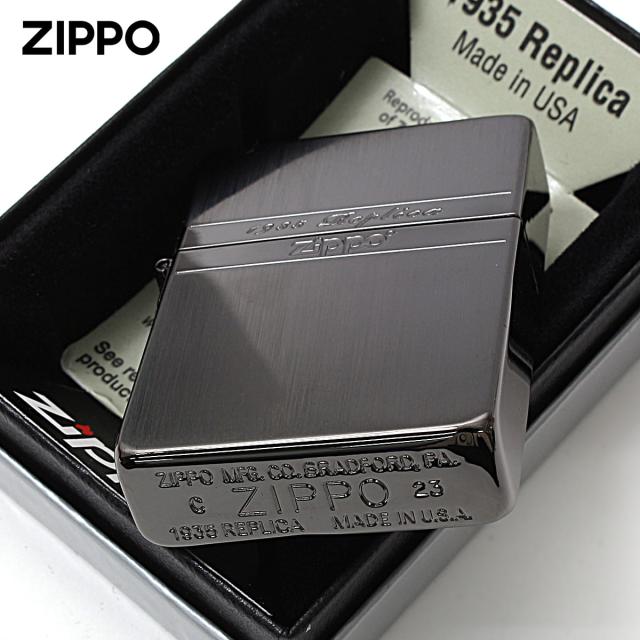 Zippo ジッポライター 1935レプリカ ミラーライン ブラックニッケル サテーナ BN メール便専用商品