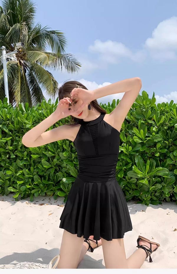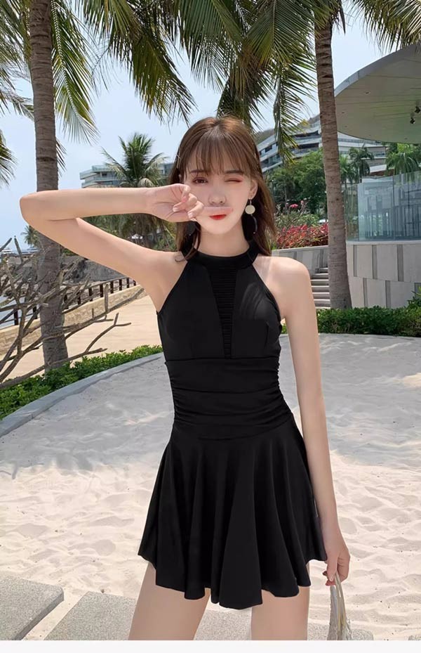 ワンピース水着 服みたいな 水着 袖なし パッド付 レディース 着?せ シンプル セクシー 写真映え 撮影用 海 夏 サマー プール リゾート かわいい 透け感あり 旅行 温泉 大人 女性用 ジュニア 学生 女の子 ブラック