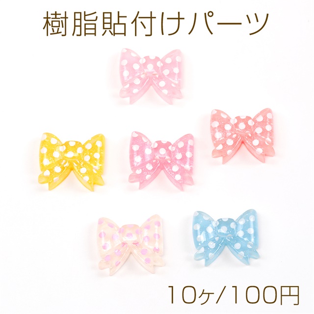 樹脂貼付けパーツ リボンデコパーツ ドットリボン樹脂カボション 半透明 約17×19mm(10ヶ)