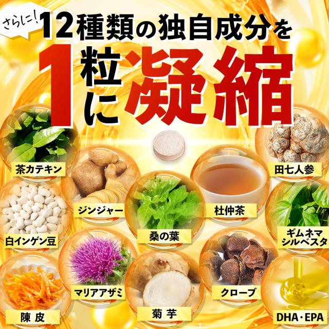 原材料:茶花エキス末(マルトデキストリン 茶花エキス) 還元麦芽糖水あめ 緑茶エキス末 有機田七人参末 桑の葉エキス末 クローブエキス末 ギムネマシルベスタエキス末 菊芋抽出物 マリアアザミエキス末 ミカンの皮粉末 杜仲茶抽出物 精製魚油粉末 白インゲン豆抽出物 ジンジャーエキス末 / セルロース ステアリン酸カルシウム 微粒酸化ケイ素 CMC