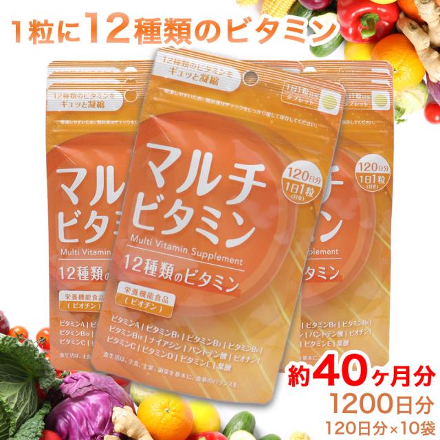 マルチビタミン タブレット 120日分 ×10袋 1日1粒目安 サプリメント 12種類のビタミン ビオチン 栄養機能食品