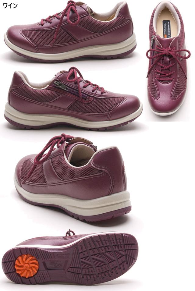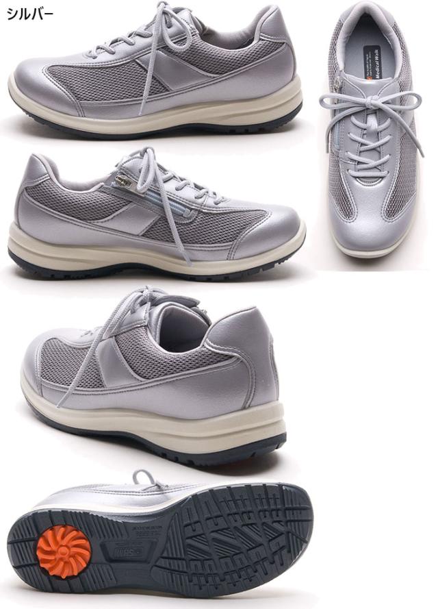 4E幅 ワイド アサヒシューズ レディース メディカルウォーク WK L030 ひざ関節を守る理想的な歩行をサポート ウォーキングシューズ スニーカー メッシュ 幅広 ブラック 黒 シルバー 送料無料 asahi shoes