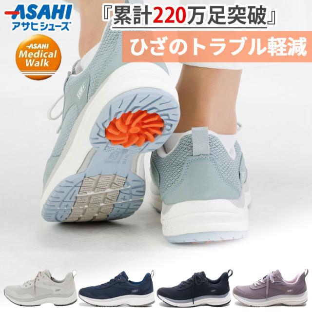 4E幅 ワイド アサヒシューズ レディース メディカルウォーク WK L031 ひざ関節を守る理想的な歩行をサポート ウォーキングシューズ スニーカー メッシュ 幅広 ホワイト 白 ブラック 黒 送料無料 asahi shoes