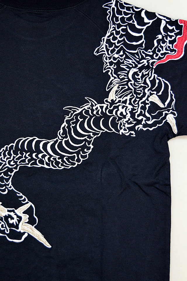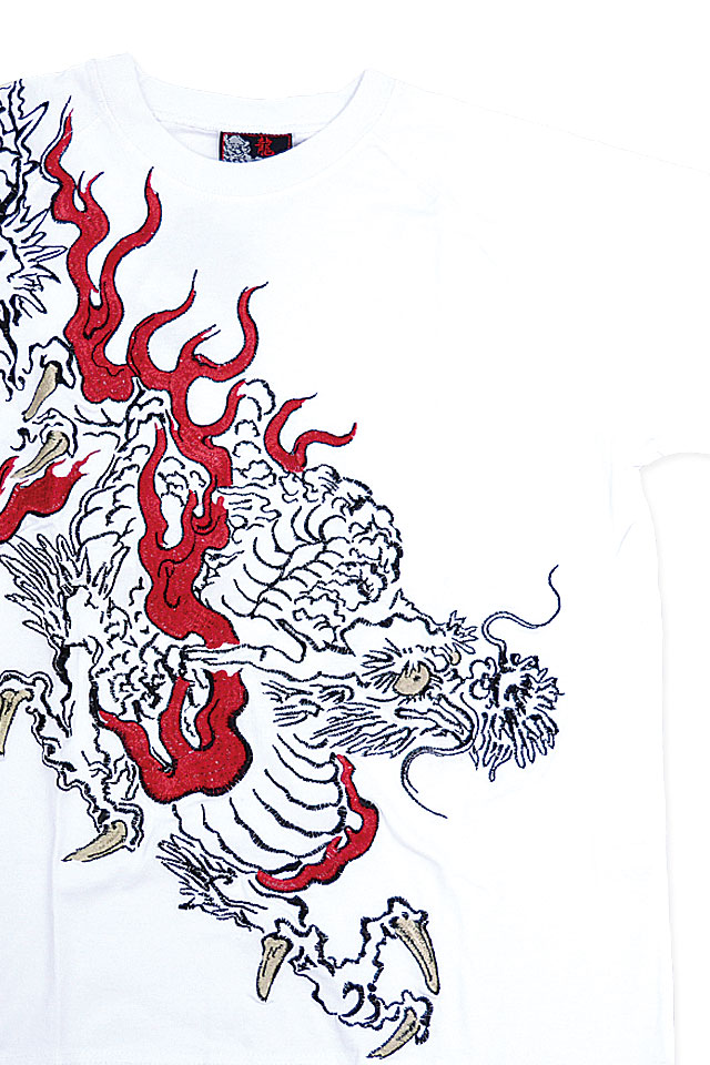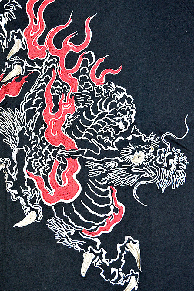 跨ぎ火炎龍柄刺繍半袖Tシャツ(RST-130)◆龍桜