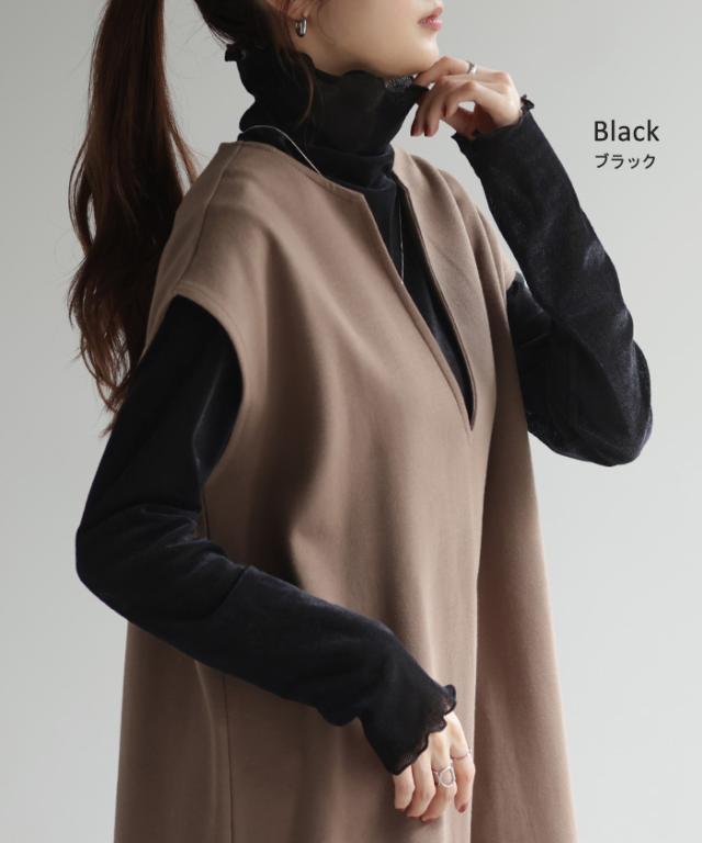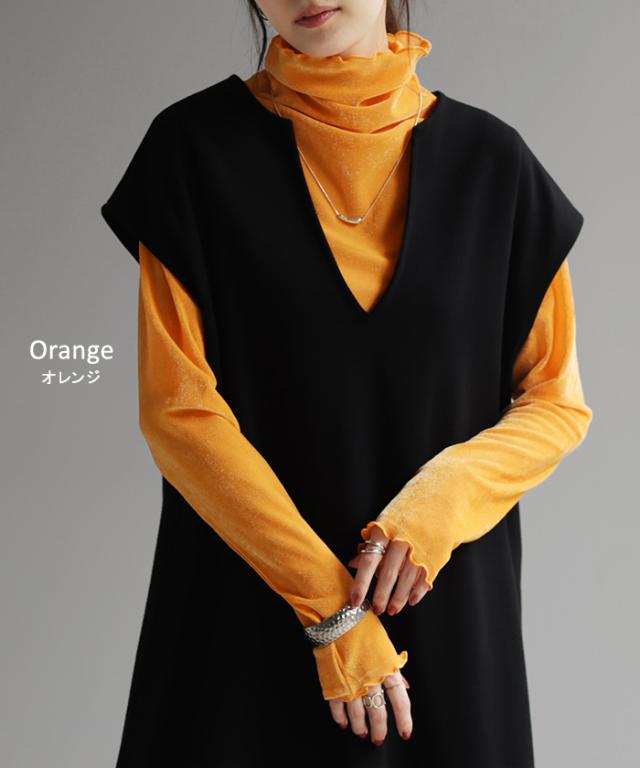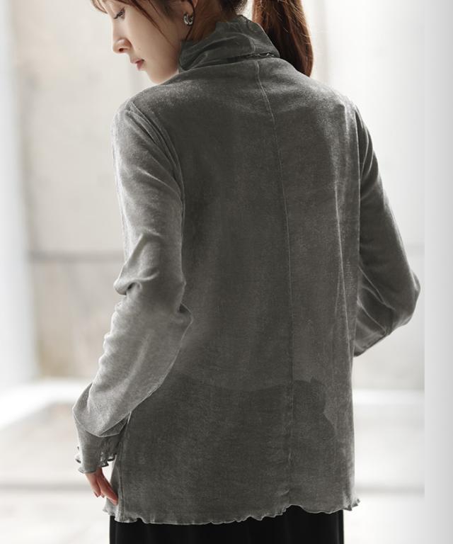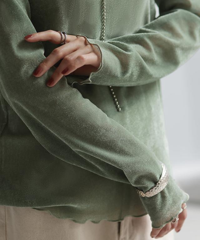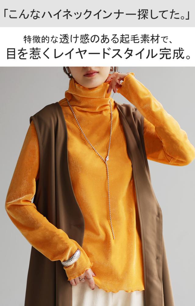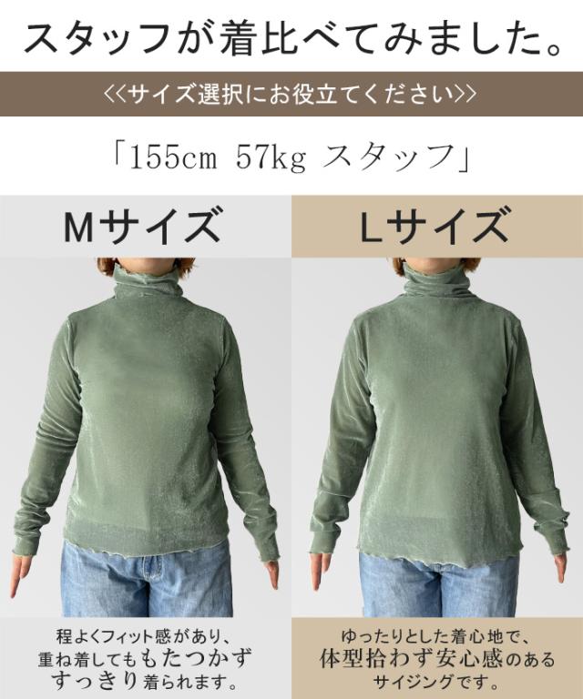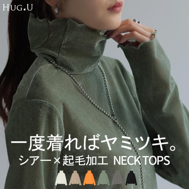 ロンT レイヤード シアー ベロア フロッキー シースルー シアートップス レディース ゆったり 肌隠し インナー 長袖 透け 重ね着 薄手 タートル ハイネック メロウ タートルネック きれいめ 体型カバー ストレッチ 無地 グリーン 黒 白 春 夏 HUG.U 秋新作