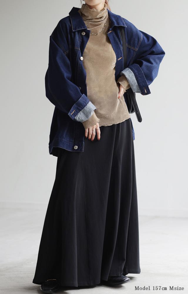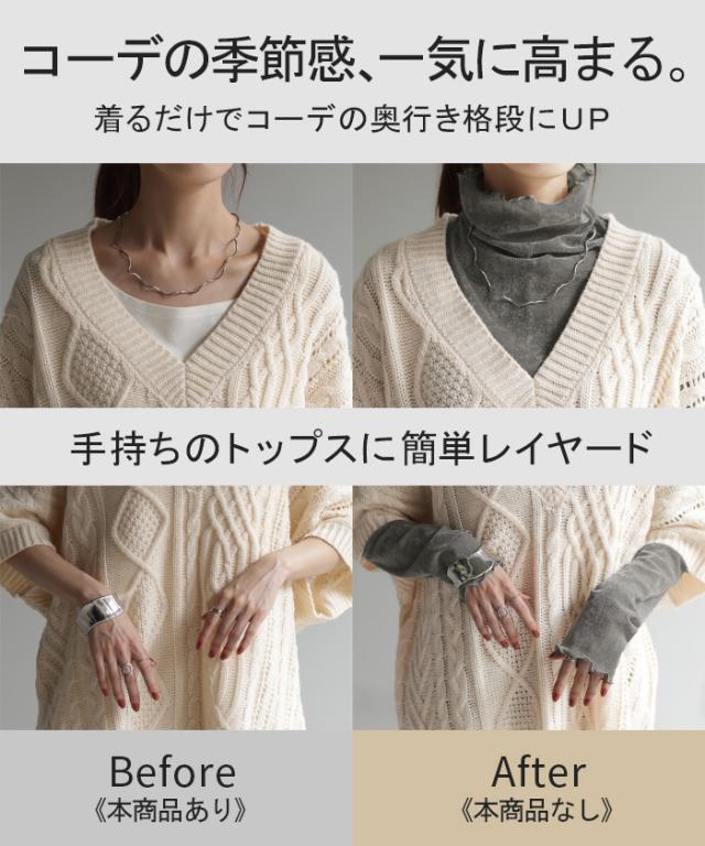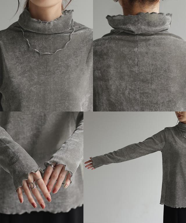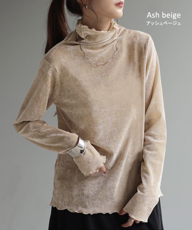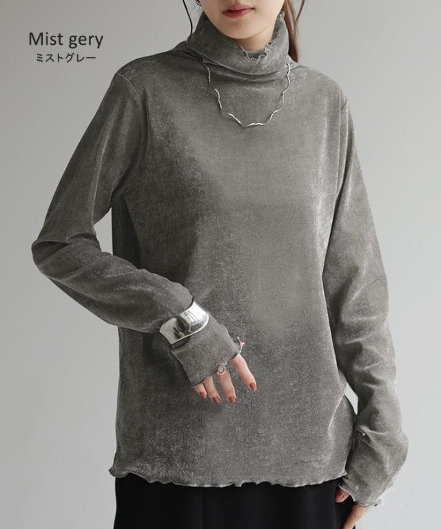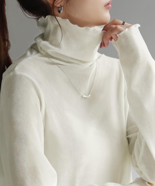 甘くなり過ぎないシアー素材を使用したハイネックプルオーバーです。