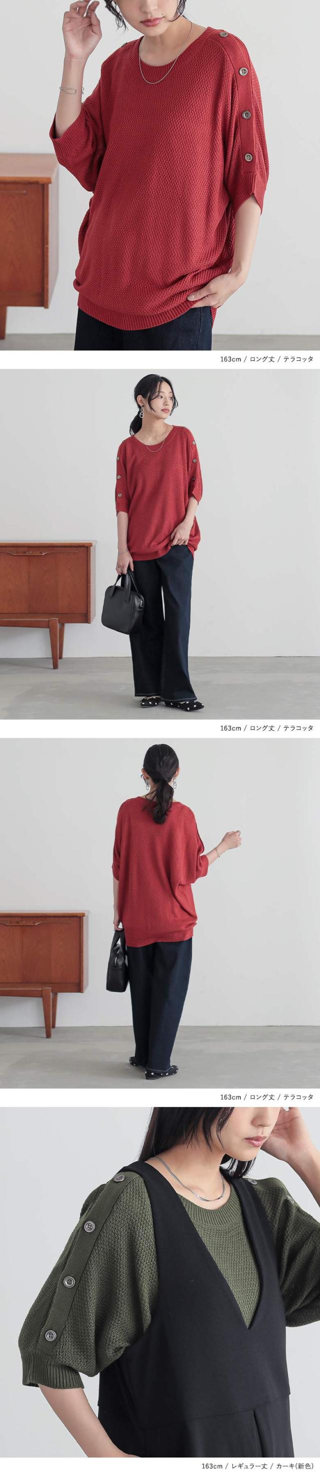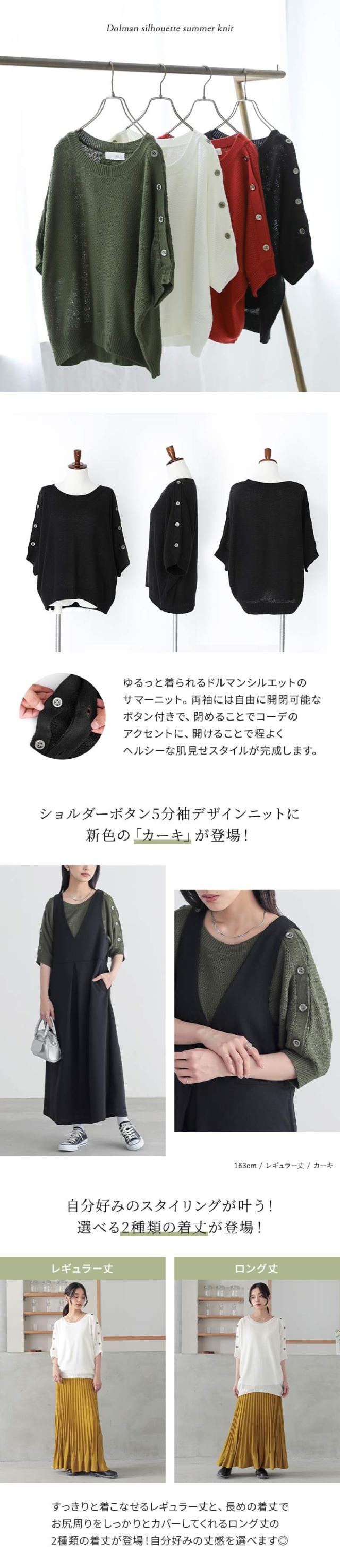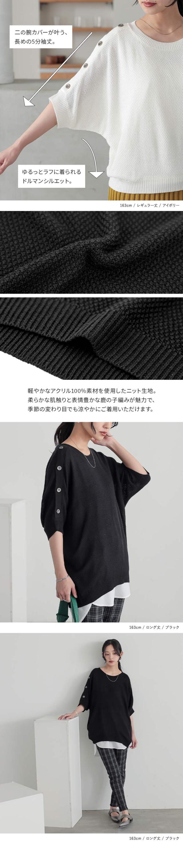 n'OrLABEL ニット レディース 秋 トップス 半袖 五分袖 ボタン 肩ボタン ショルダーボタン 無地 鹿の子編み 【TP】 ニット・セーター セーター プルオーバー クルーネック ノア—ルレーベル 大人女子 大人可愛い お洒落可愛い 大人カジュアル ベーシック ニュアンス ラフ エフォートレス オフィスカジュアル 七分袖 パフスリーブ ドルマンスリーブ ミディ丈 変形 2way 調節できる 調整可能 透け感 カジュアル キレカジ オフィス・ビジネス Sサイズ Mサイズ Lサイズ LLサイズ 3Lサイズ XLサイズ フリーサイズ ぽっちゃり 体型カバー 二の腕カバー ヒップが隠れる 10代 20代 30代 40代 50代 60代 女子会 オフィス 通勤 通学 お買い物 お出掛け 旅行 リゾート レジャー おしゃれ お洒落 osharewalker オシャレウォーカー おしゃれうぉーかー ホワイト 白 オフホワイト アイボリー オレンジ コーラル テラコッタ ブラック 黒 ボタン開き アレンジ リブ ドロップショルダー 春 夏 スリット シンプル ナチュラル レギュラー丈 ロング丈 ミドル丈 ミドル丈ニット ロング丈ニット カーキ グリーン 緑[ID]13tm04n[n'OrLABELショルダーボタン5分袖デザインニット]