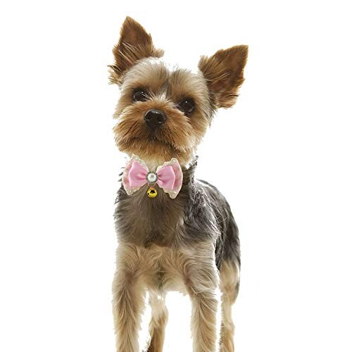 猫首輪 鈴付き 貴族風ちょう結び猫用 中型犬 小型犬用 リボン付け襟 レース 柔らかい皮 ペット首輪 調整可能 軽量(S,ピンク)