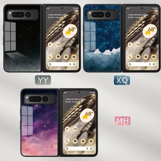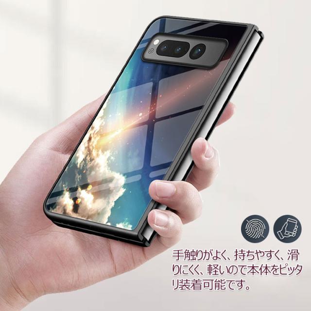 Google Pixel Fold ケース 背面ガラス型 pixel fold カバー ガラスケース 耐衝撃 可愛い シンプル グーグル ピクセル フォールド スマホケース 9H強化ガラス おしゃれ かわいい オシャレ 可愛い PCハード 衝撃吸収 傷防止 薄型 光沢デザイン