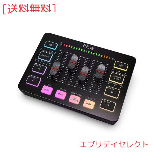 FIFINE ゲーミングオーディオミキサー オーディオインターフェース PS5/PS4 ゲーム用オーディオミキサー ポッドキャスト ミキサー RGB機