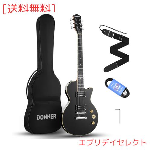 Donner エレキギター 初心者セット LPタイプ 39インチ フルサイズ ポプラ材 HHピックアップ配列 専用ケース ストラップ シールド付 ブラ