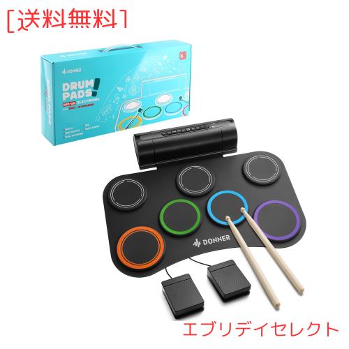 Donner 電子ドラムセット ロールアップ ドラムパッド スピーカー内蔵 2WAY給電 MIDI 録音機能 デモ12曲 9リズム 子供 初心者 フットペダ