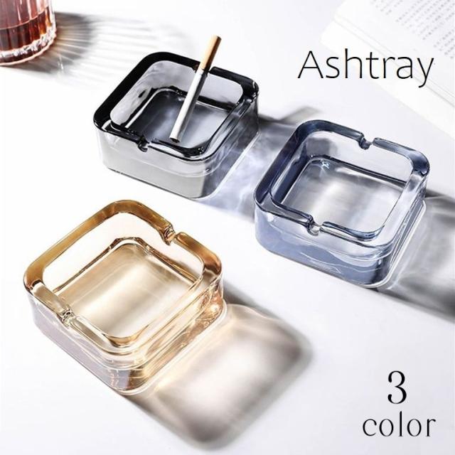 灰皿 アッシュトレイ ガラス製 吸い殻入れ スクエア 四角 喫煙グッズ たばこ用品 溝付き 卓上 透明 クリア グレー アンバー