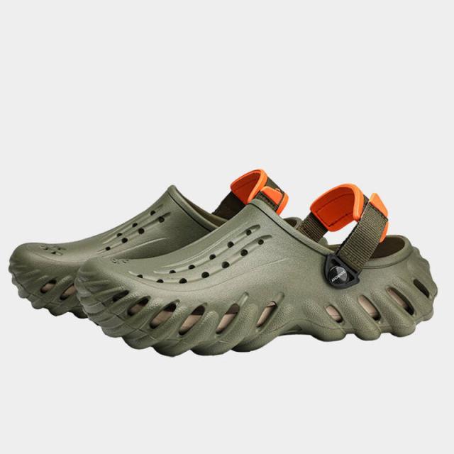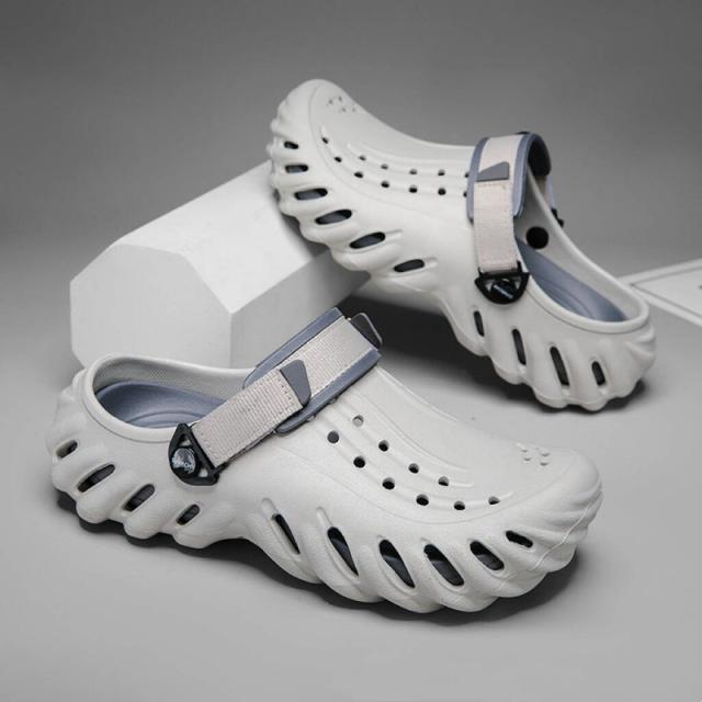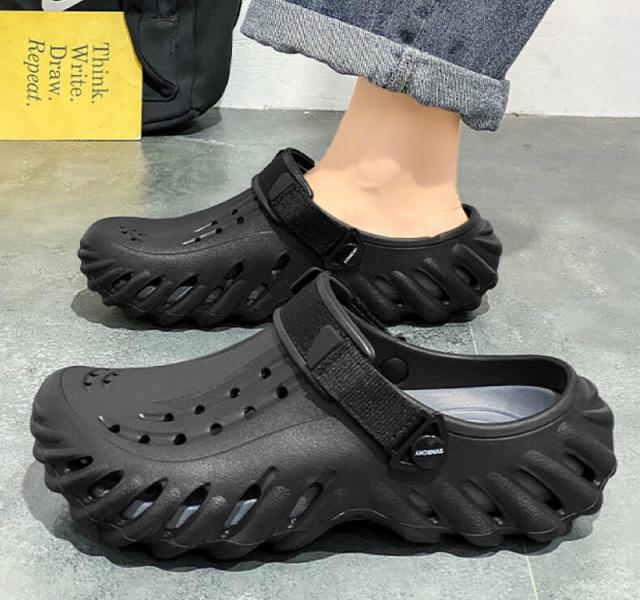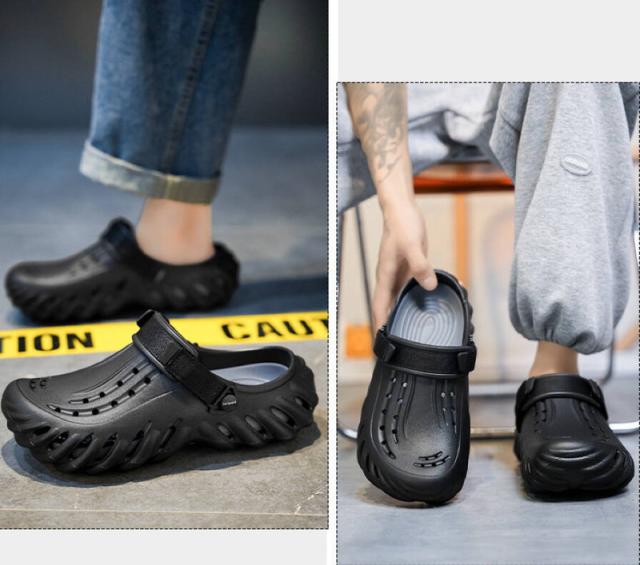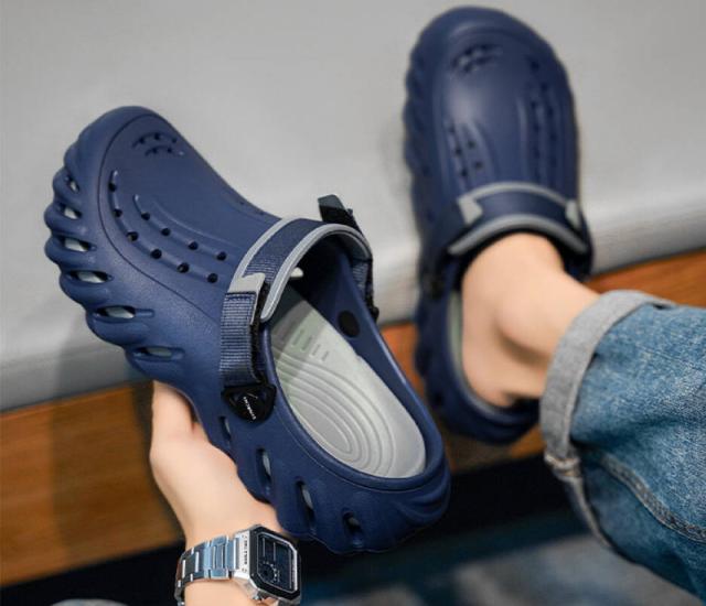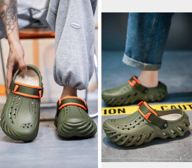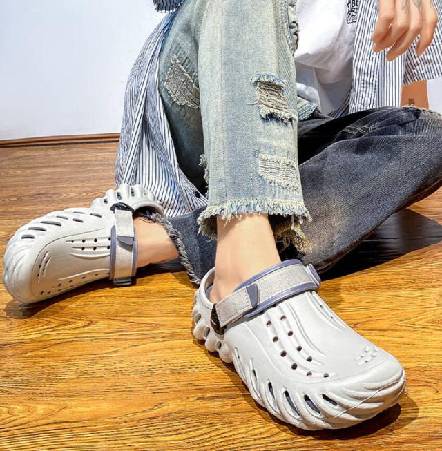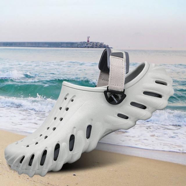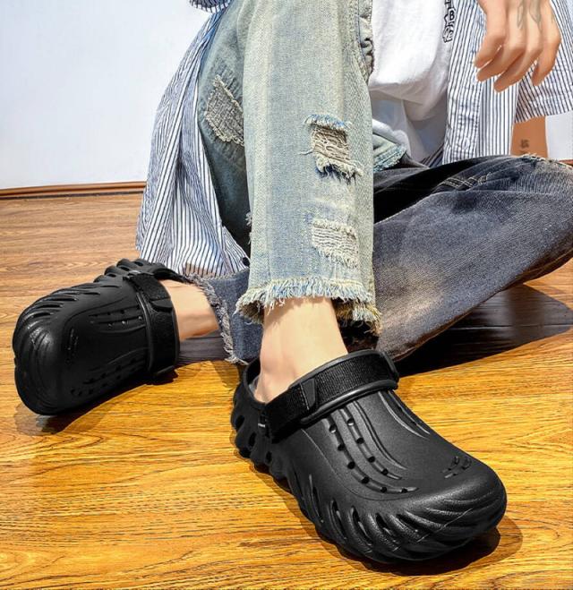 ★【着用 2 way 】スリッパ + サンダル両用のシューズ、軽量で通気性バツグン!持ち運びも超便利!ヒールストラップを後ろに動かせばピッタリと足にフィットするスタイル、前に動かせばクロッグとして履くことが可能。