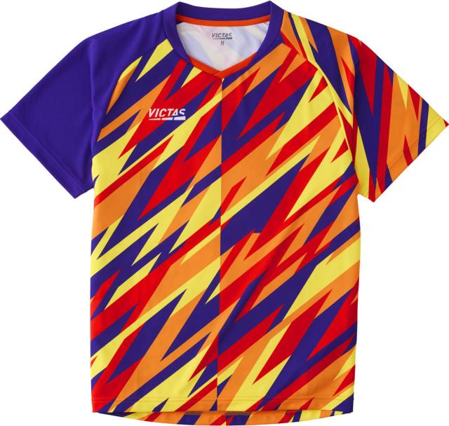 斜めにはしるエネルギッシュなグラフィックをポップに表現したデザインいポップなカラです。現したゲームシャツです。スタイリッシュな NV 、クリアーな OR クールな TQ からチョイスしてください。肌触りがよい素材を使用したゲームシャツです。