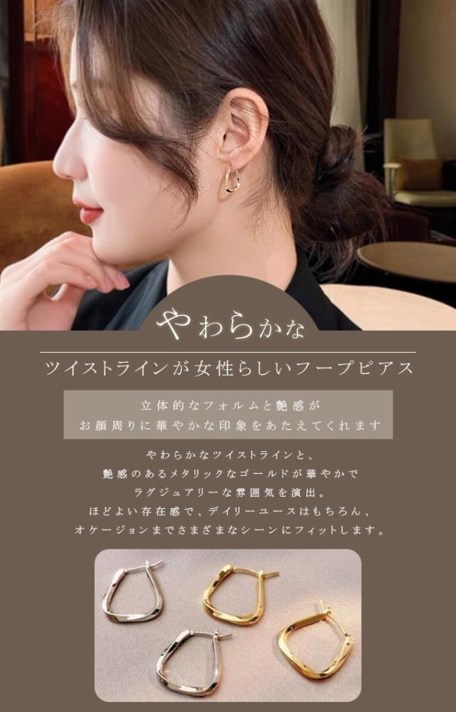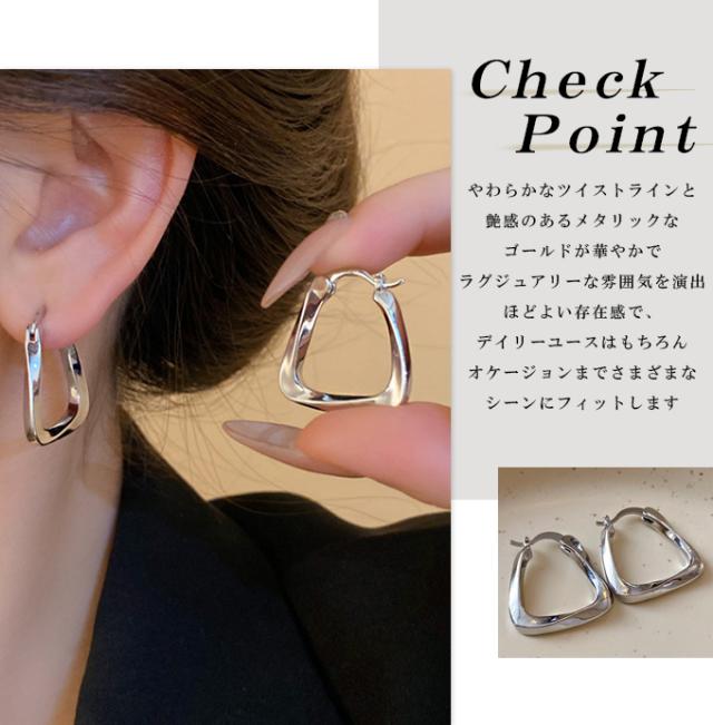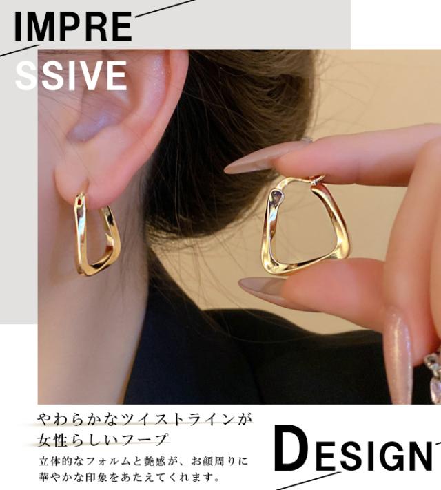 ピアス フープピアス イヤリング 大ぶり ツイスト レディース 大人 かわいい 上品 エレガント ゴールド シルバー プチプライス高見え