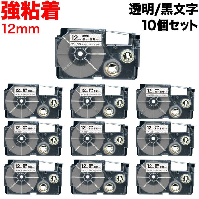 カシオ用 ネームランド 互換 テープカートリッジ 強粘着 XR-12GX 10個セット 【メール便送料無料】 12mm/透明テープ/黒文字